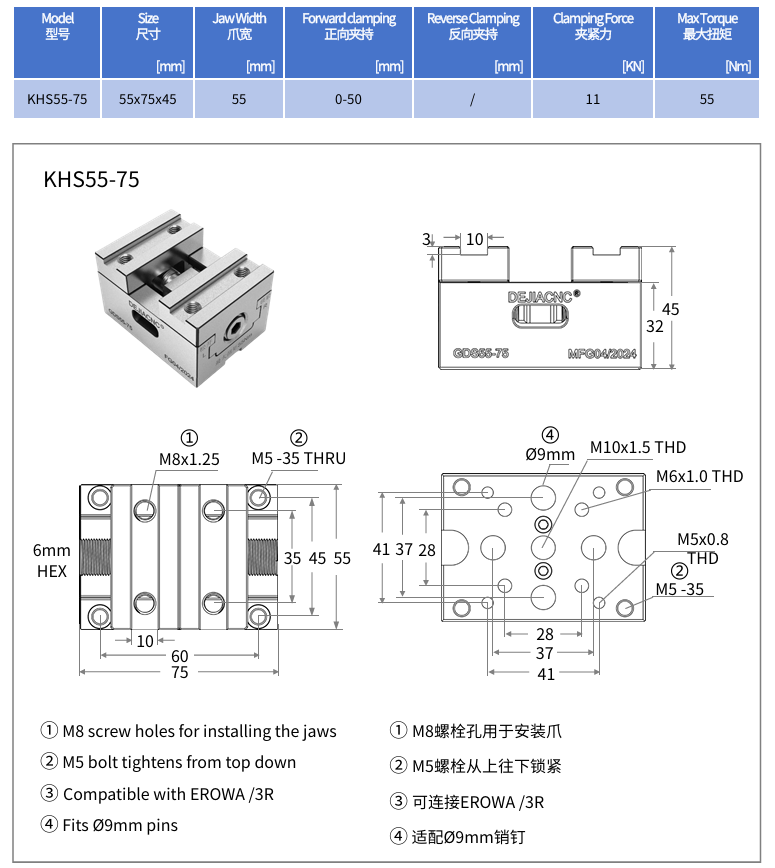 KHS55-75 Technical data | 技术数据